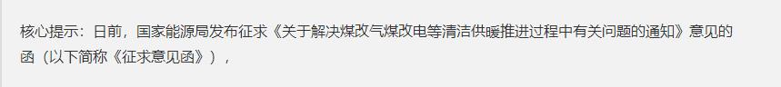 日前,國(guó)家能源局發(fā)布征求《關(guān)于解決“煤改氣”“煤改電”等清潔供暖推進(jìn)過(guò)程中有關(guān)問題的通知》意見的函(以下簡(jiǎn)稱“《征求意見函》”),引發(fā)業(yè)內(nèi)熱議。